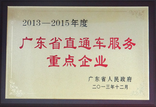 广东省人民政府授予康宝的“2013—2015年度广东省直通车服务重点企业”牌匾