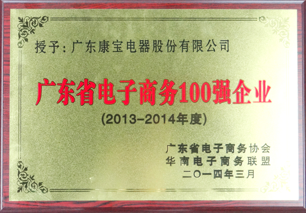 康宝电器获评为“2013—2014年度广东省电子商务100 强企业”
