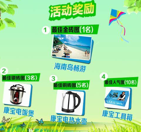 另外参与大众投票,总票数前10名的选手(已获奖的选手不参与排名)均可获得康宝便捷工具箱一套。
