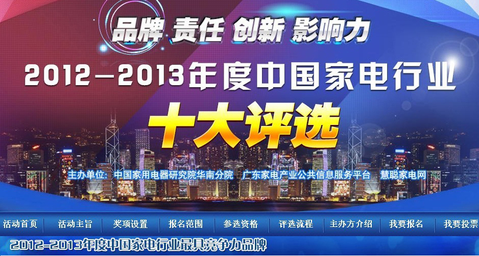 5月13日,由中国家用电器研究院华南分院、广东家电产业公共信息服务平台和慧聪家电网联合主办的“2012—2013年度中国家电行业十大评选”活动正式启动。