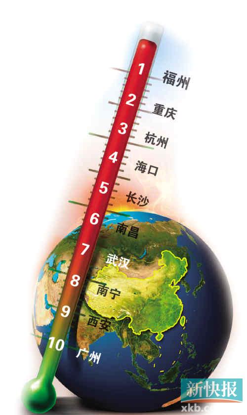 日前,“@中国气象”发布了内地“四大火炉”名单。微博称,“新的30年(1981-2010年)全国高温呈现增多趋势,华南地区高温日(35℃以上)增幅最明显,广州增7.7天、福州增5天、海口增5天。另外,内地最新‘三大火炉’分别是福州、重庆和杭州。福州为中国内地省会级城市的高温王者,超过了重庆,成为内地大城市第一火炉。”值得一提的是,新的火炉城市排名中,广州位列第十。