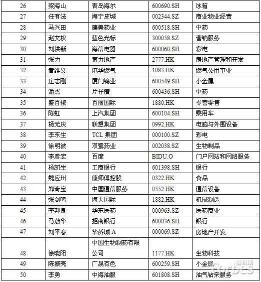 新浪科技讯,7月3日晚间消息,福布斯中文版今日推出“2013年中国50位最佳CEO”。在此榜单中,格力电器CEO董明珠排名第3,腾讯董事局主席兼CEO马化腾排名第5,联想集团CEO杨元庆排名第37,百度CEO李彦宏排名第40。